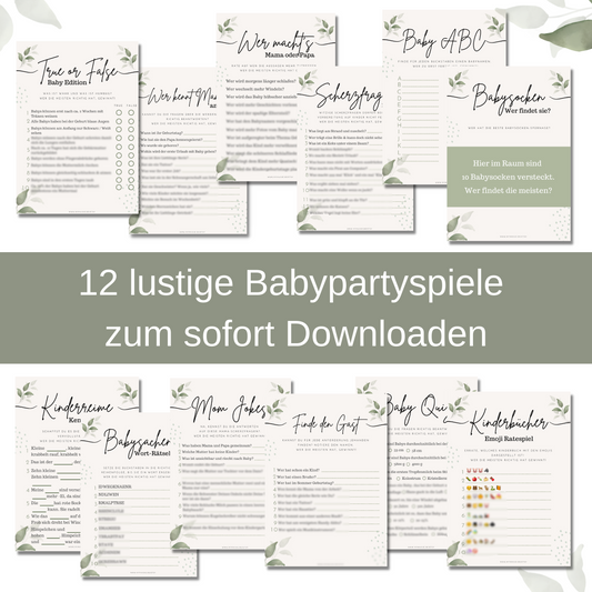 Babyparty Spiele Set – 12 lustige Babyparty Spiele zum Ausdrucken