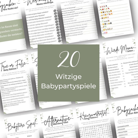 Babyparty Spiele Set – 20 lustige Babyparty Spiele zum Ausdrucken