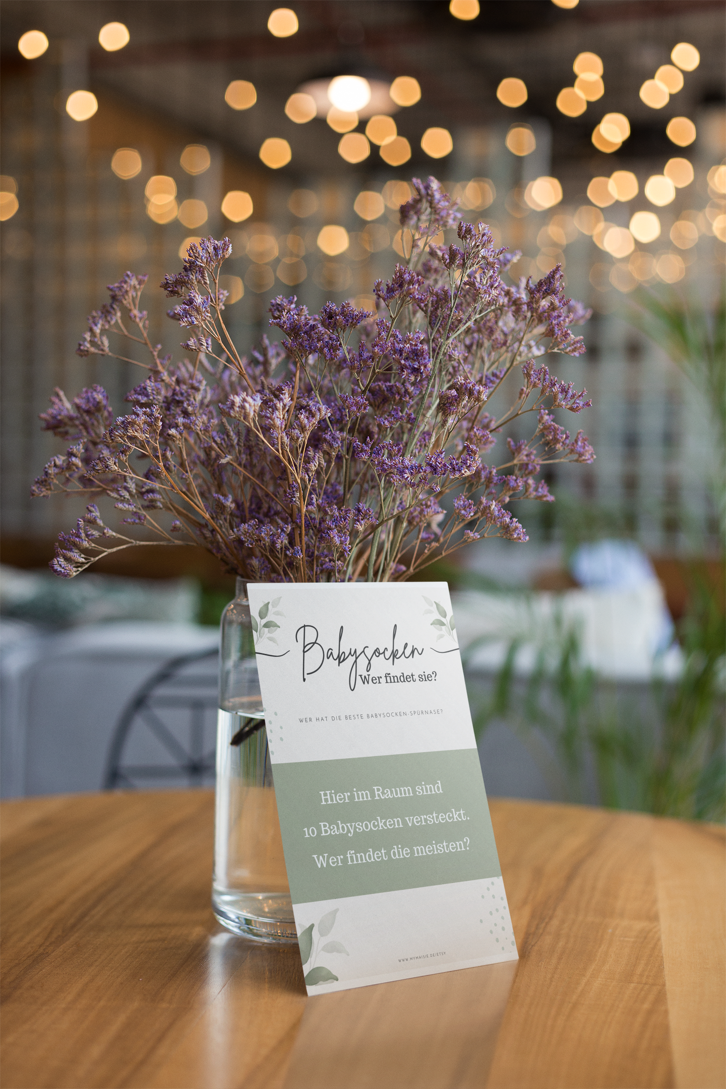 Du kannst auch einfach 10 Babysocken im Raum suchen und wer die meisten findet, gewinnt.