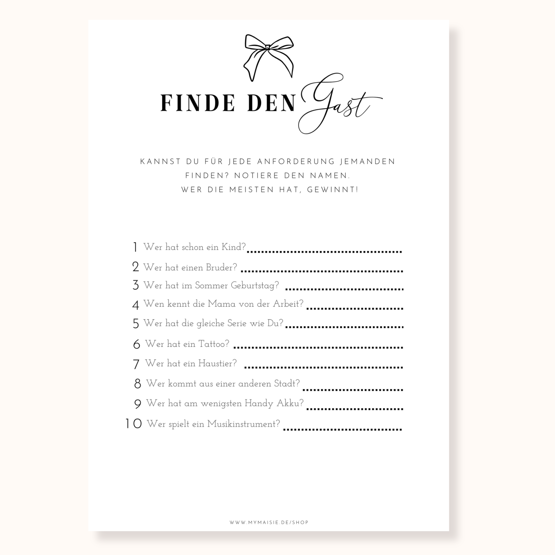 Babyparty Spiel „Finde den Gast“ – lustiger Eisbrecher für die Babyshower (Deutsch)